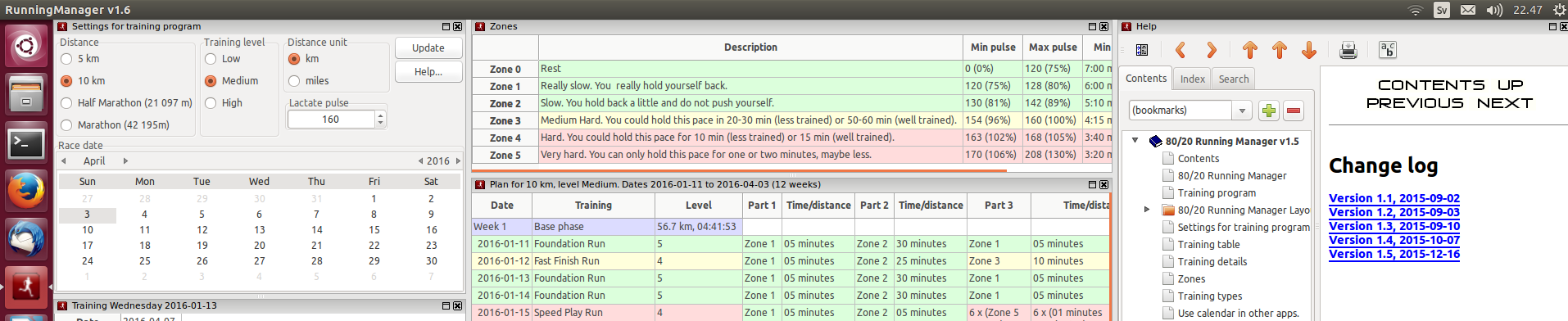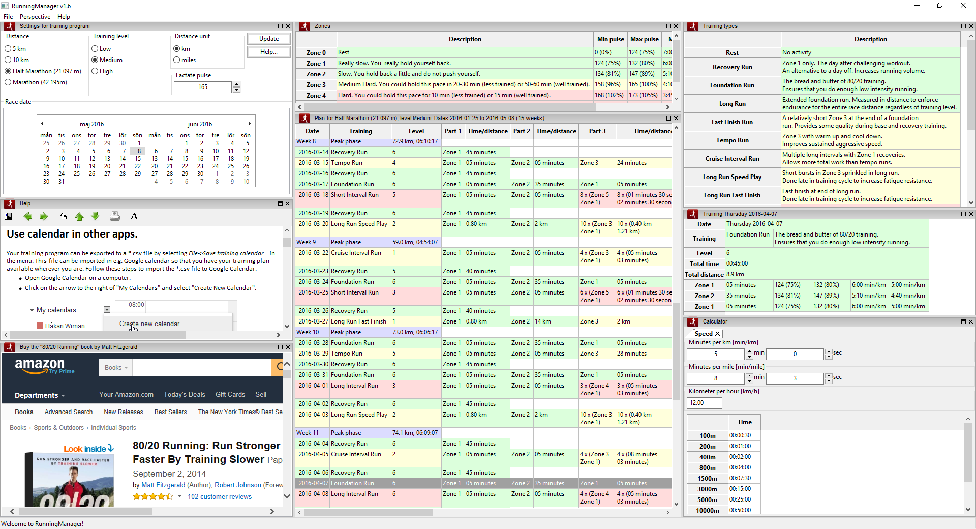 When you have started 80/20 Running Manager you will see a number of panes.